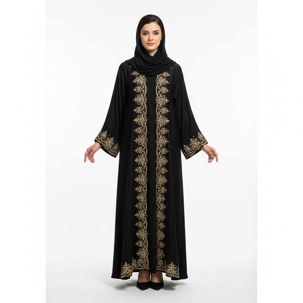 Premium luxury abaya with fine embroidery, flowing fabric, and elegant finish for special occasions.